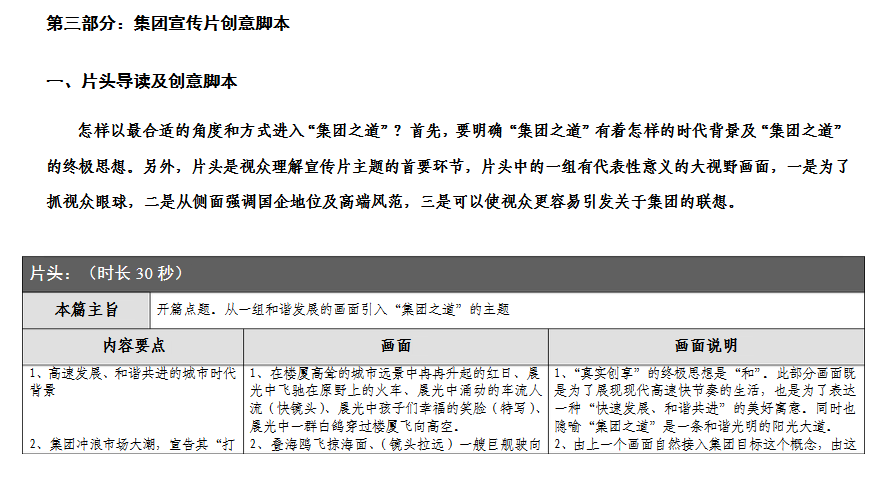 第二部分:集團形象宣傳片“集團之道”策劃方案框架;